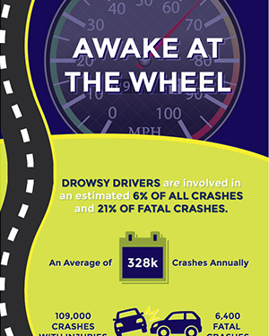 The “Awake at the Wheel” campaign raises awareness of the dangers of drowsy driving to reduce avoidable motor vehicle accidents and save lives.